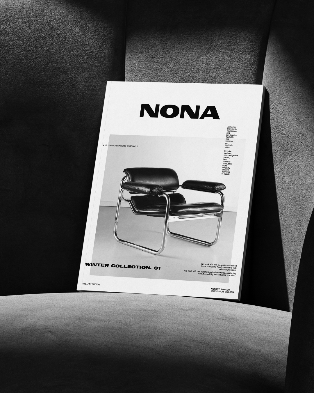 NONA is a furniture and interior brand rooted in Scandinavian design principles; minimal, balanced, and timeless. Its identity reflects calm functionality and sculptural simplicity, where every form has purpose. The visual language combines natural materials, muted tones, and refined craftsmanship to create an atmosphere of quiet sophistication — contemporary yet deeply connected to Nordic tradition.